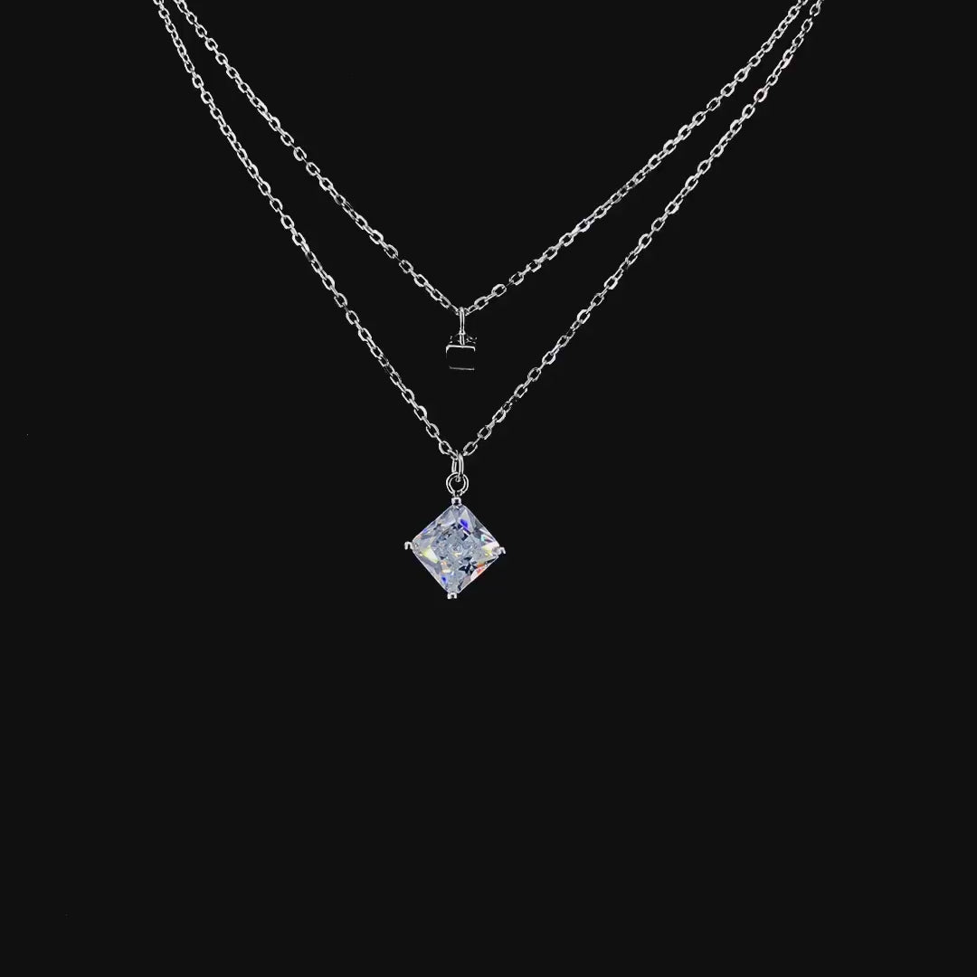 Zylver Double-Layer Zircon Pendant Necklace for Women - Sterling Silver Collection