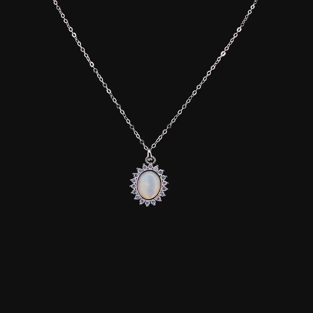 Zylver Opal and Zircon Sunburst Necklace for Women - Sterling Silver Collection