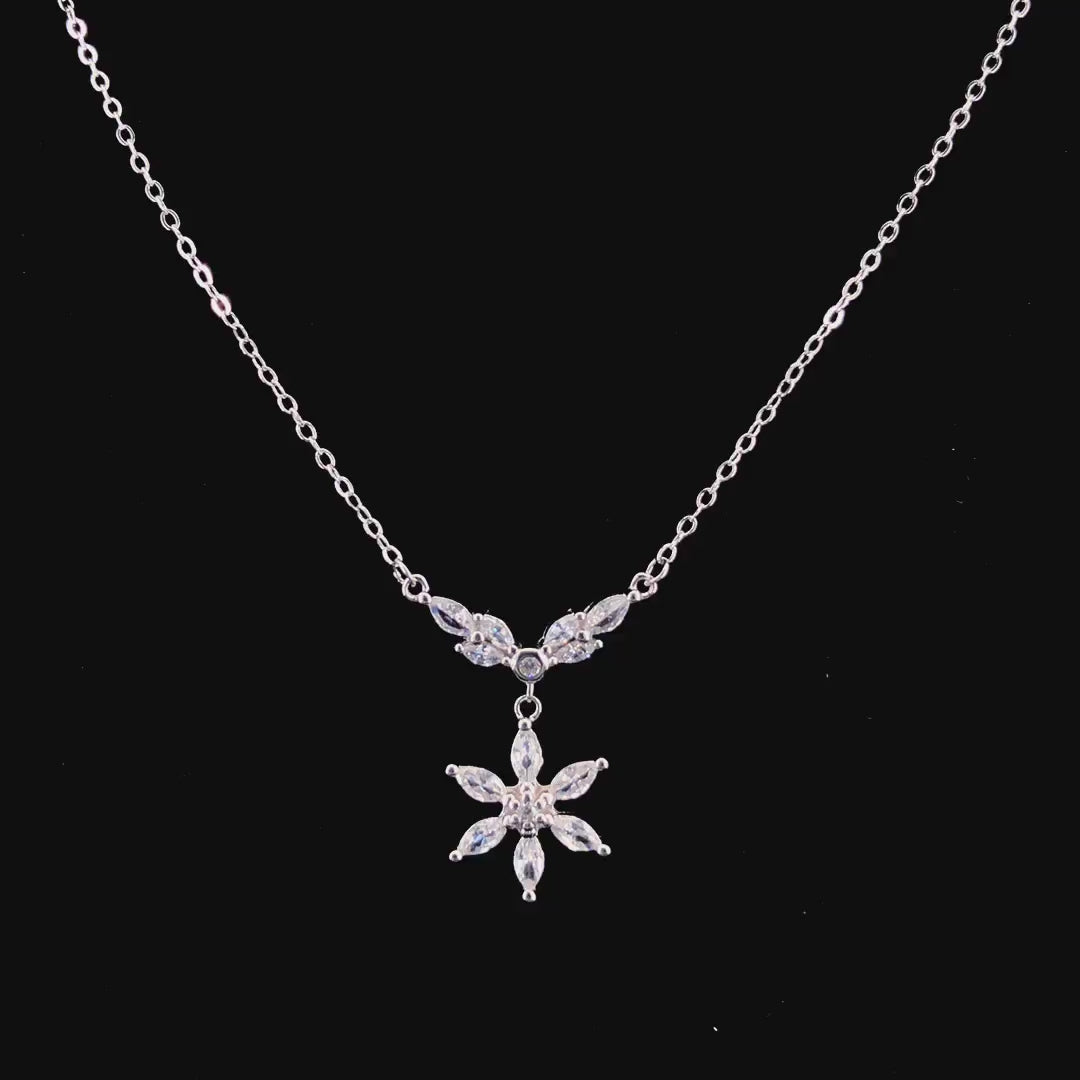 Zylver Zircon Snowflake Pendant Necklace for Women - Sterling Silver Collection