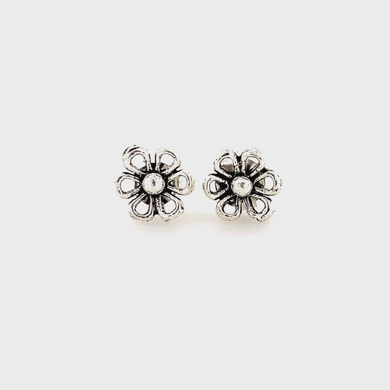 Zylver Oxidized Floral Stud Earrings for Women - Sterling Silver Collection