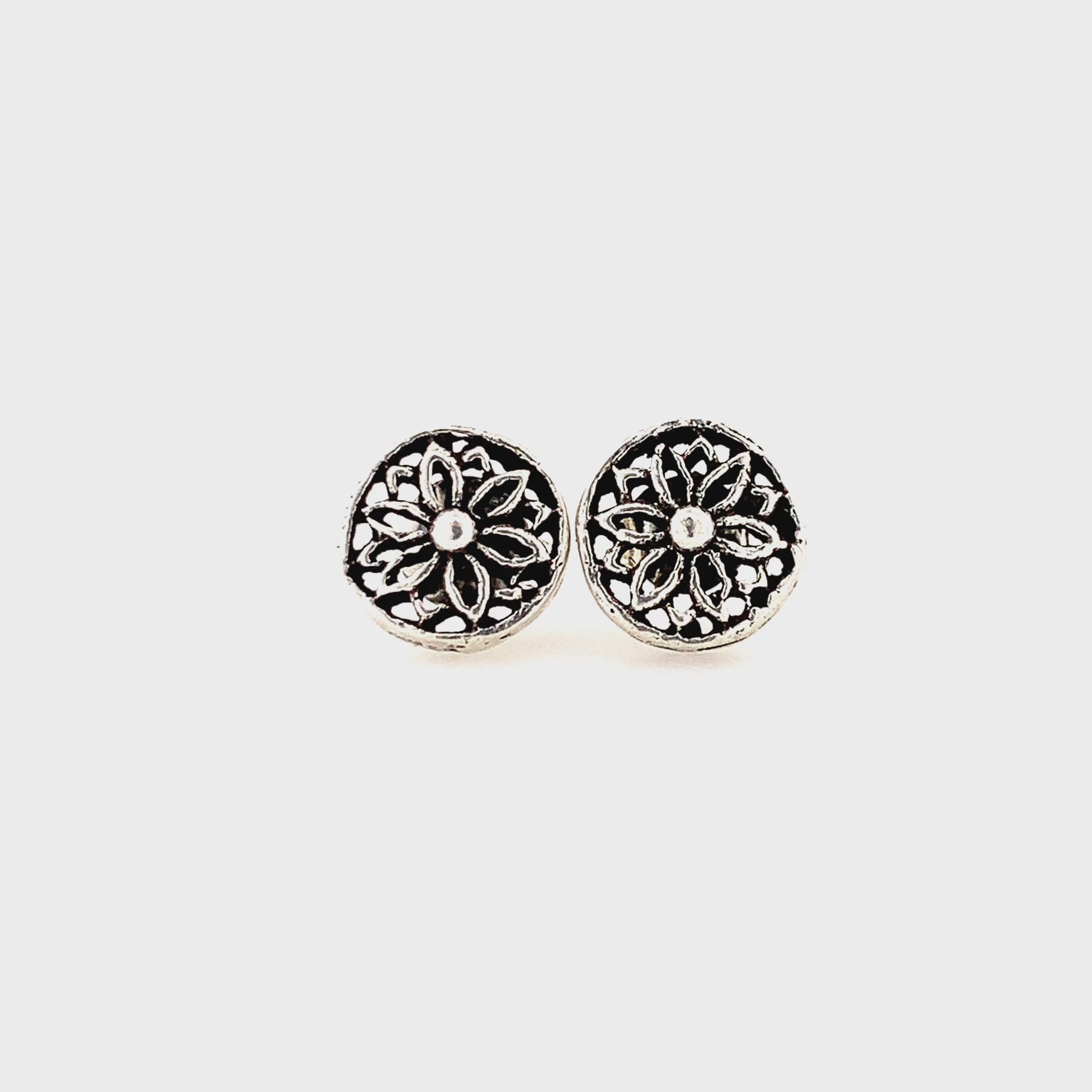 Zylver Floral Oxidized Stud Earrings for Women - Sterling Silver Collection