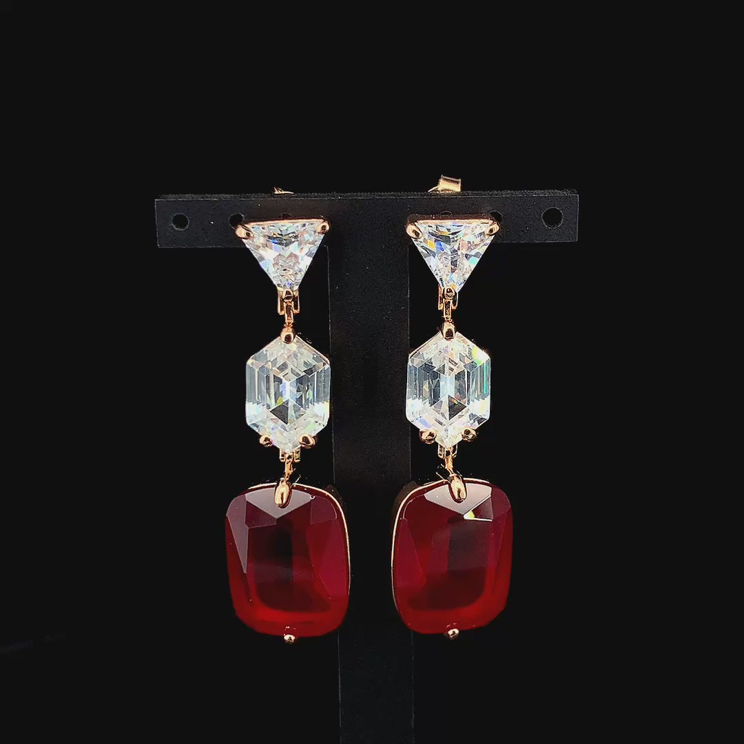 Zylver Red Crystal Drop Earrings for Women - Demi-Fine Collection