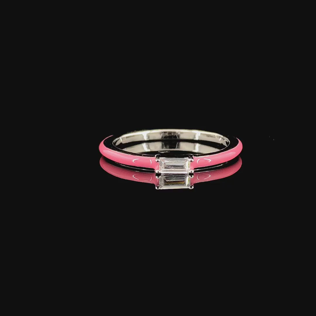 Zylver Pink Enameled Baguette Ring for Women - Sterling Silver Collection