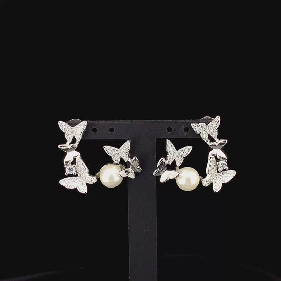 Zylver Butterfly Pearl Statement Earrings for Women - Sterling Silver Collection