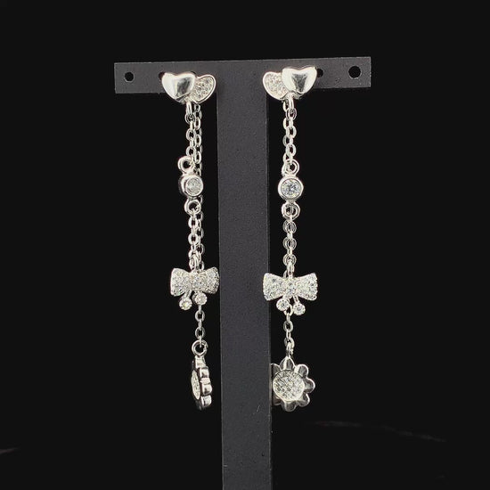 Zylver Heart and Bow Dangle Earrings for Women - Sterling Silver Collection
